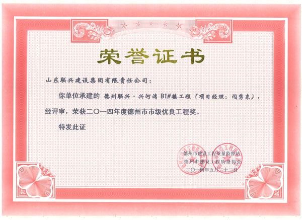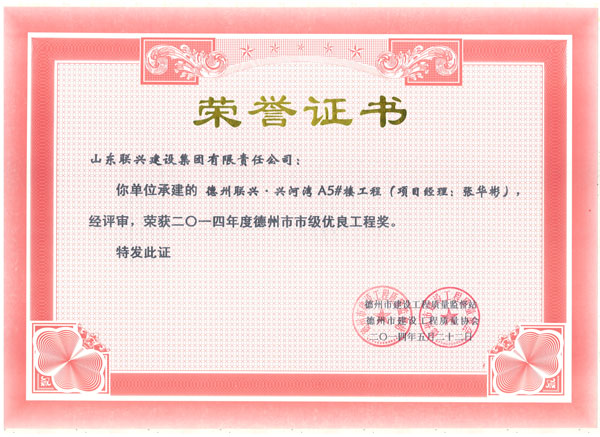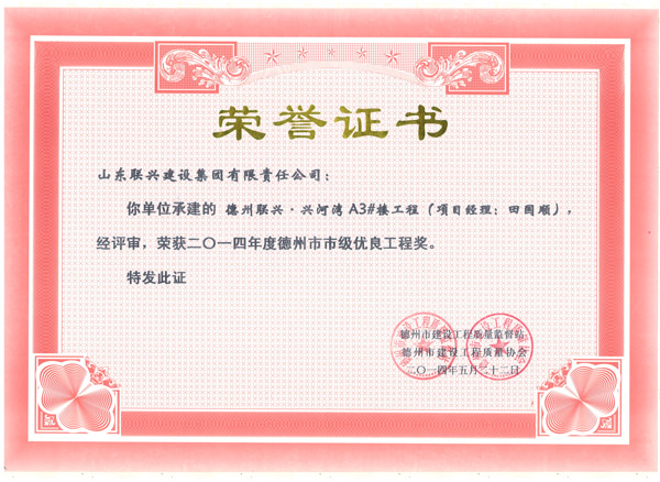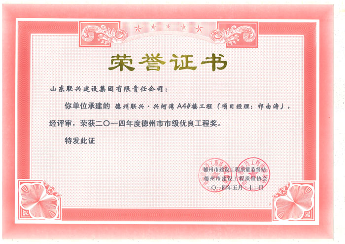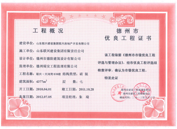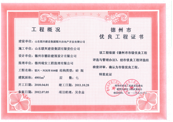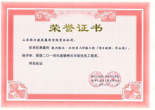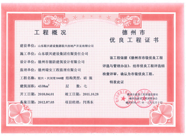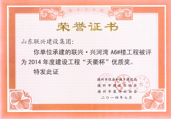 兴河湾A6天衢杯证书